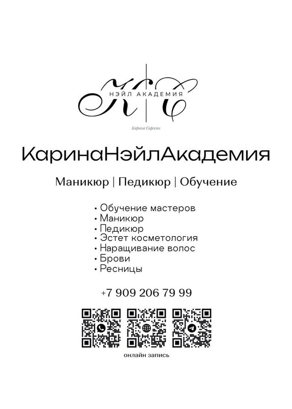 Что такое красота? В салоне красоты KarinaNailAcademy мы считаем, что это прежде всего радость и легкость! К сожалению, для многих современных людей, которые заняты карьерой и повседневной ответственностью, уход за собой превратился в утомительную работу, которая не приносит никакой радости, но которую они вынуждены выполнять, чтобы хорошо выглядеть. Поручите мастерам Салона красоты KarinaNailAcademy позаботиться о вашем внешнем виде - и вам обязательно принесет радость как время, проведенное здесь, так и его результат!